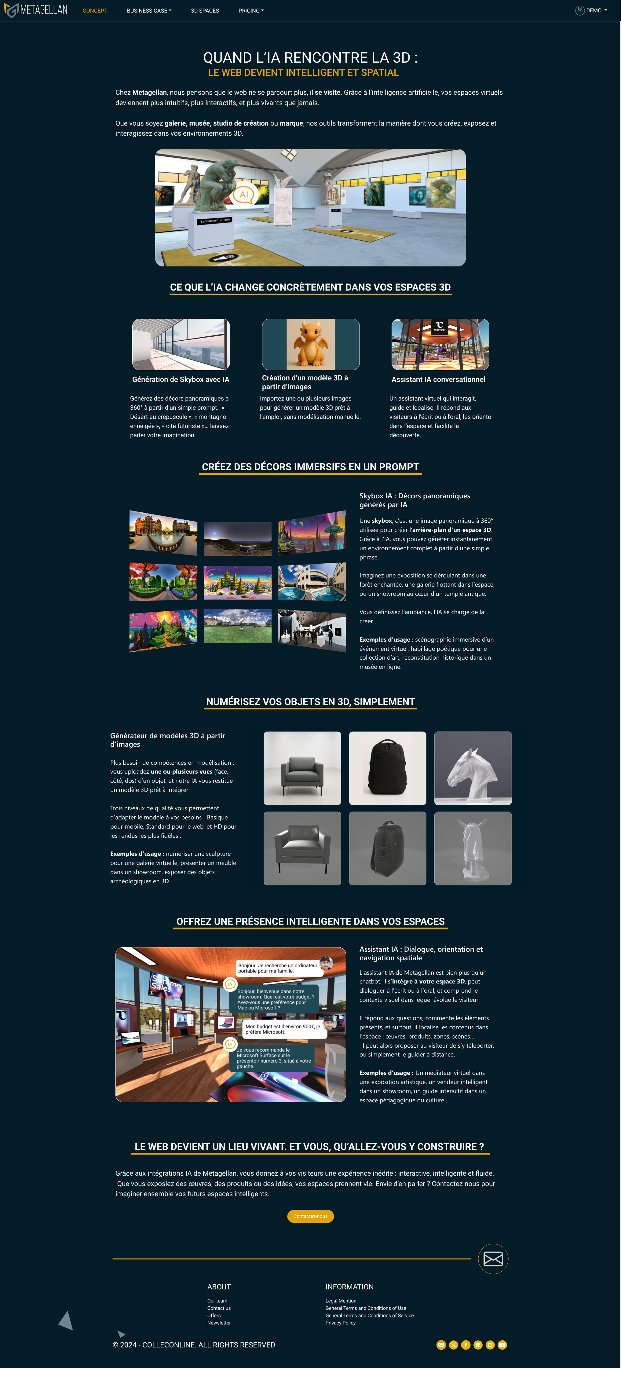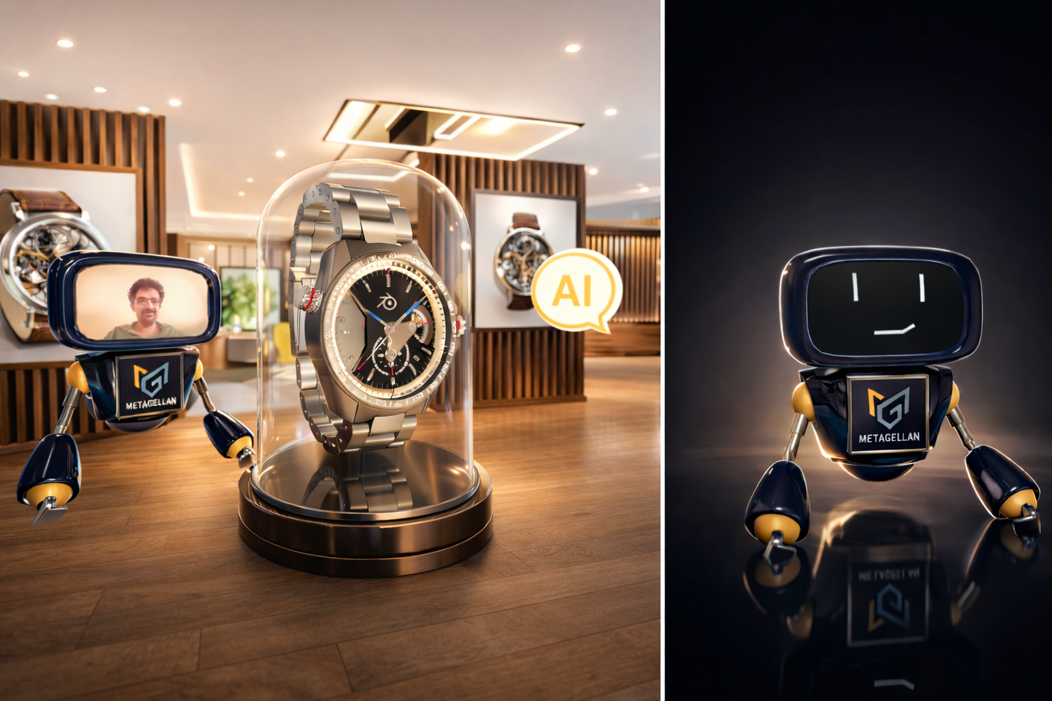 To enhance navigation and understanding within immersive environments, I designed a 3D AI-powered robot that acted as a conversational guide. Accessible on both desktop and mobile browsers, this interactive agent responded to user questions, assisted exploration, and provided contextual guidance in real time. By combining conversational and spatial interaction, it became a key UX and commercial asset within the Metagellan platform.